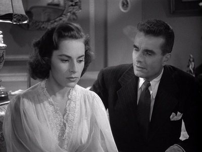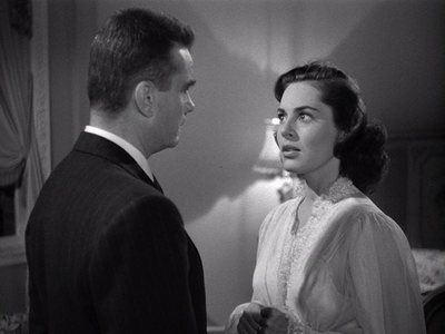 when he returns to the mansion. He has to deceive his wife Evelyn (Lindfors),